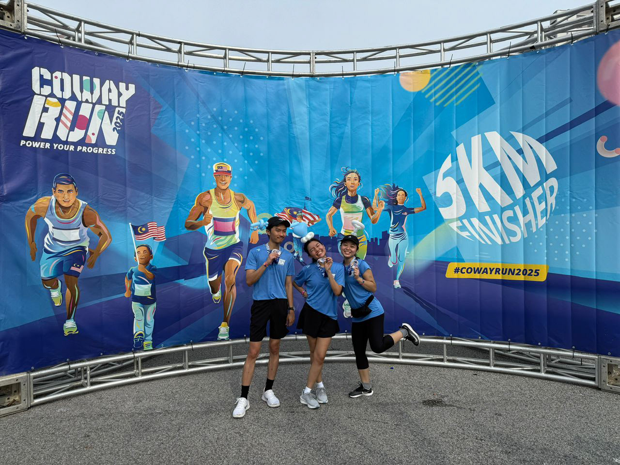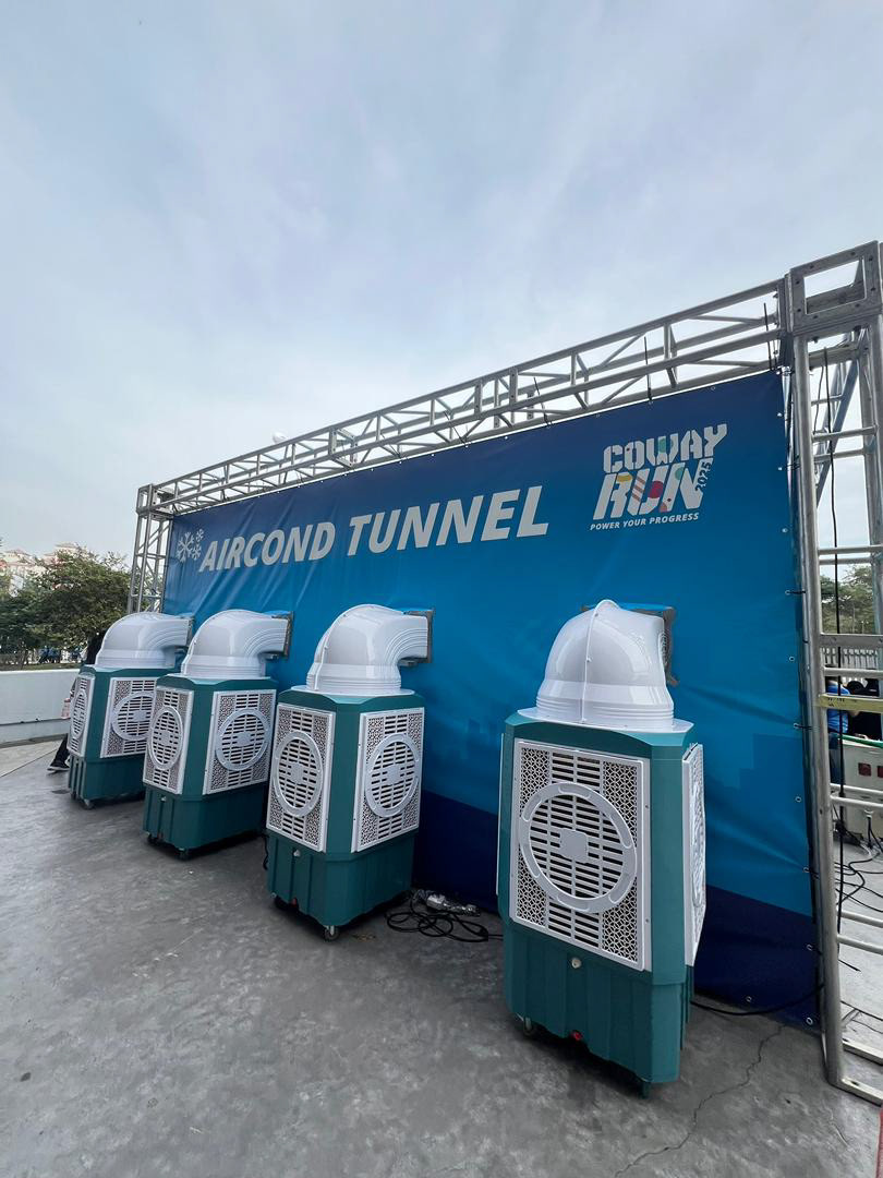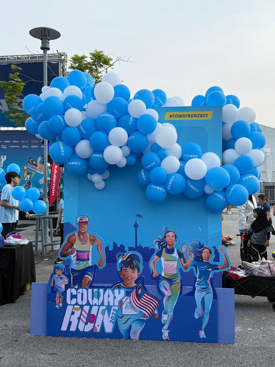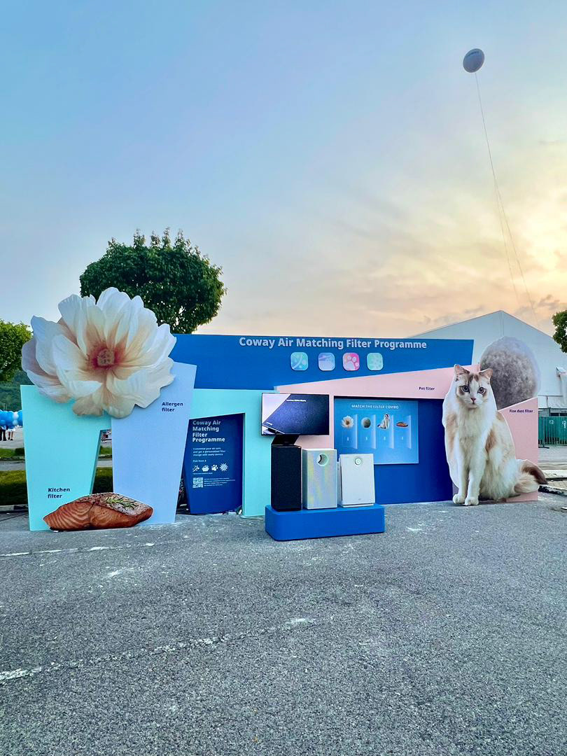 Once the direction was set, we applied it across all assets — digital, print, and on-ground. We also created photo spots for runners to take pictures after finishing the race, and helped design the in-race experience, including fun hurdles inspired by Coway products.