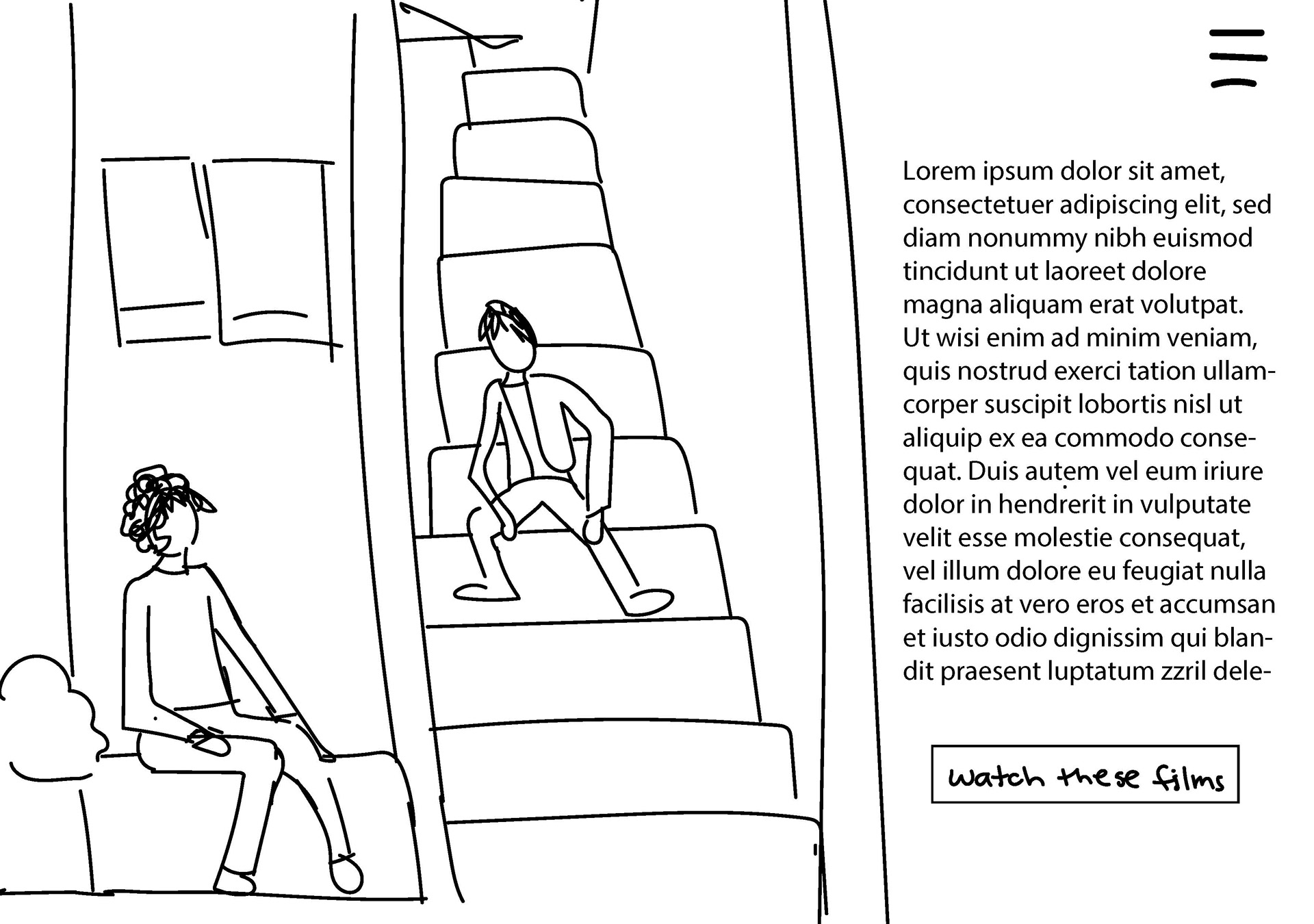 I first drew out the wireframe for the website by hand because I wanted to plan for the scenes of the movie that I will showcase in the site.